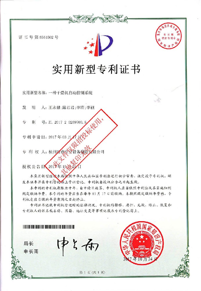 專利證書1